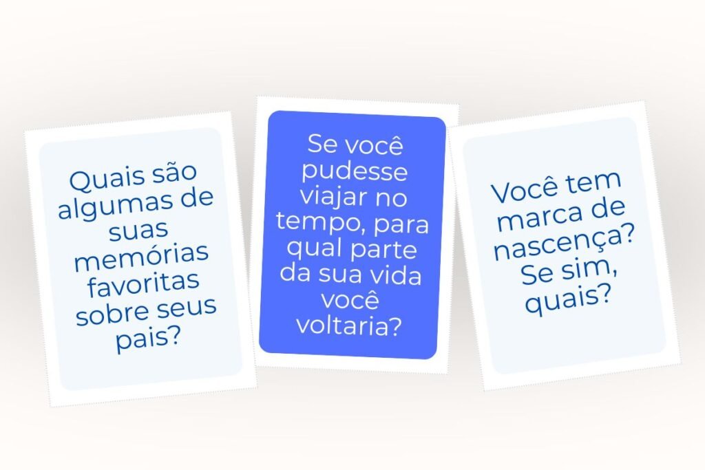Vá além do “tudo bem com a saúde?” e do “já comeu?”. As cartas têm perguntas criadas para quebrar a superficialidade da rotina e gerar um diálogo autêntico sobre a vida. Descubra histórias, valores e aprendizados dos seus pais e avós que você jamais imaginou.