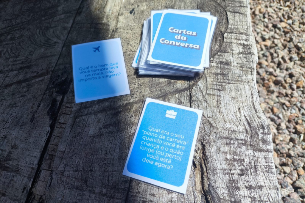 Escolha uma carta, leia a pergunta e responda ou escute. A conversa acontece sem certo ou errado, no tempo de cada pessoa.