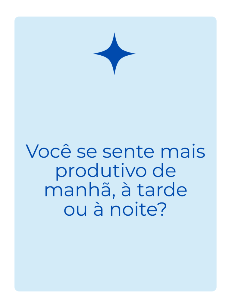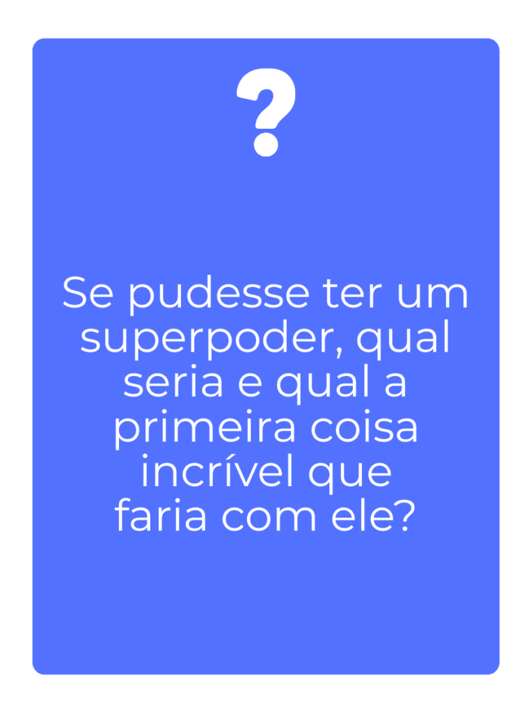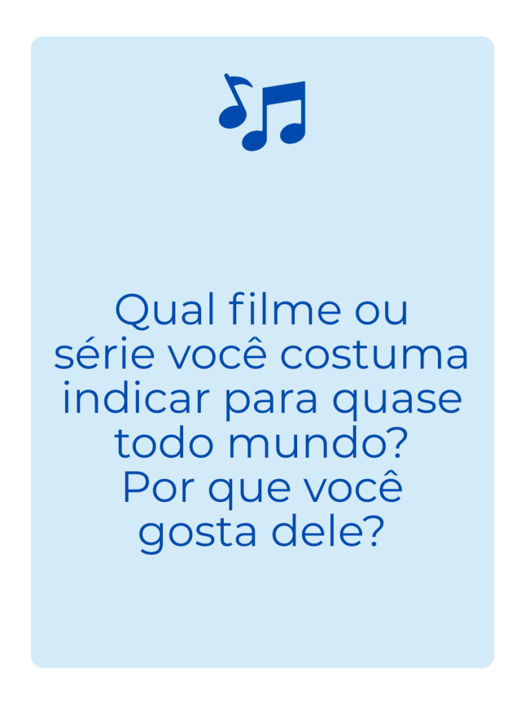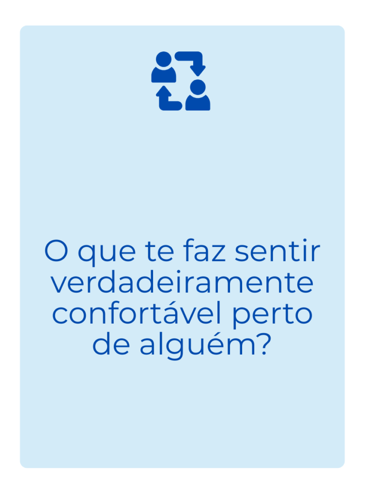 Perguntas pensadas para sair do automático e permitir conversas que acontecem com naturalidade.